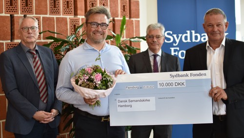 For nyligt var jeg hos Sydbank i Flensborg for at få overrakt en flot donation på 10.000 Kr. til Benediktekirkens ungdomsarbejde. Pengene skal bruges på at genopstarte kirkens ungdomsarbejde, som på grund af coronaen har været aflyst i næsten et helt år.Vi er meget taknemmelige for den fornemme donation, som giver os mulighed for at vi kan få spændende foredragsholdere eller musikere til at komme til Ungaften, arrangere ekskursioner, virksomhedsbesøg, entre til museer, koncerter og meget, meget mere.