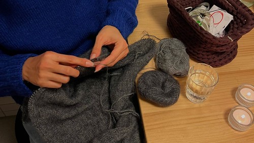 'Sy, strik og drik' varetages denne aften af Shanna, som er en af efterårets unge beboere i kirken.